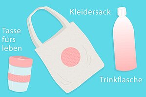 Zu den umweltfreundlichen Alternativen können etwa ein wiederverwendbarer Becher für die Fahrt zur Arbeit, eine wiederverwendbare Getränkeflasche für Freizeit und Arbeit sowie Einkaufstaschen aus Stoff sein, die im Hauseingang oder Auto aufbewahrt werden.