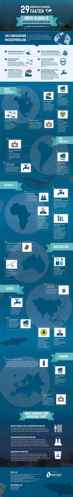 Zur Zeit leben 7,5 Milliarden Menschen auf unserem wunderschön blauen Planeten. Diese Zahl wird bis zum Jahr 2050 auf sagenhafte 10 Milliarden steigen. Die Nachfrage nach vielen Ressourcen wird durch das Bevölkerungswachstum immer mehr zum Problem. Gerade Wasser-Ressourcen sind dabei sehr betroffen. Wasser auf allen Kontinenten ist heutzutage verschmutzter denn je. Unsere Infografik zeigt 29 beängstigende Fakten über die Wasserverschmutzung auf der ganzen Welt.