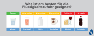 Sinkt der Körperwasseranteil um nur 2%, fängt man an, sich durstig zu fühlen. Hat man diesen Punkt erreicht, befindet man sich schon in einem Zustand der Dehydration.