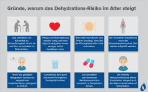 Leider gibt es eine Reihe von Gründen, warum mit dem Älter werden auch das Risiko der Dehydration zunimmt: