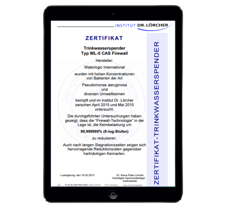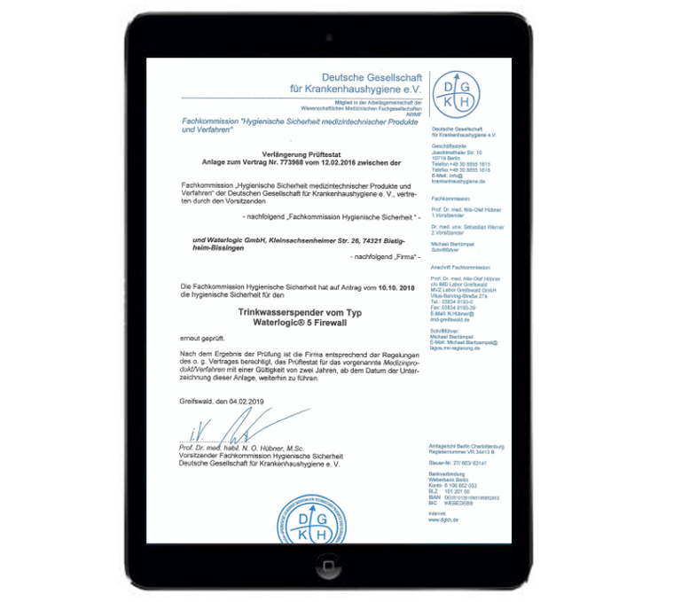 Die Deutsche Gesellschaft für Krankenhaushygiene untersuchte unsere Wasserspender für den gesundheitlichen Bereich.